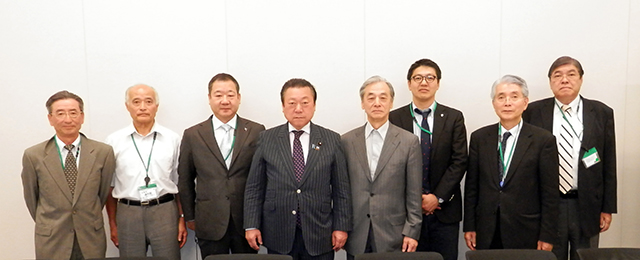 「航空機産業推進議員連盟」の衆議院議員櫻田義孝会長(中央)と議連サポート団のメンバー